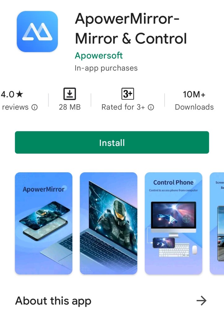 Download karne ke liye play store pe jaye aur search kare Apower mirror.